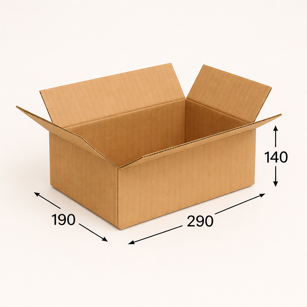 Картонная коробка 290×190×140 мм — оптимальный выбор для хранения, перевозки и отправки товаров, когда важны качество, прочность и стабильные оптовые поставки упаковочных материалов.