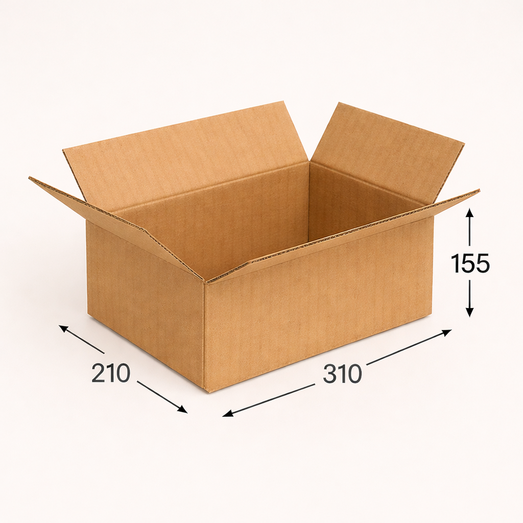 Картонная коробка 310×210×155 мм — оптимальный выбор для хранения, перевозки и отправки товаров, когда важны качество, универсальность и стабильные оптовые поставки упаковочных материалов.