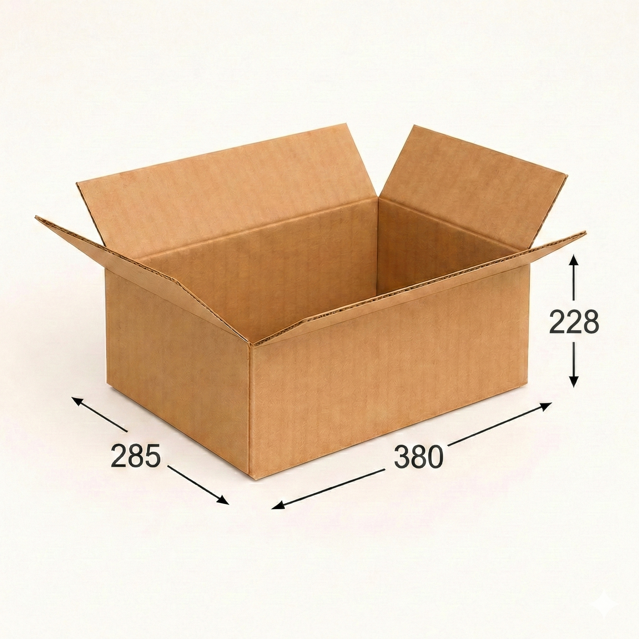 Ищете надежную упаковку, которая не подведет в пути и защитит ваши вещи? Наша четырехклапанная картонная коробка средних габаритов (38х28,5х22,8 см или 38 на 28 на 22) — это именно то, что вам нужно. Этот универсальный ящик из гофрокартона 380х285х228 мм станет отличным решением как для бытовых нужд, так и для бизнеса.