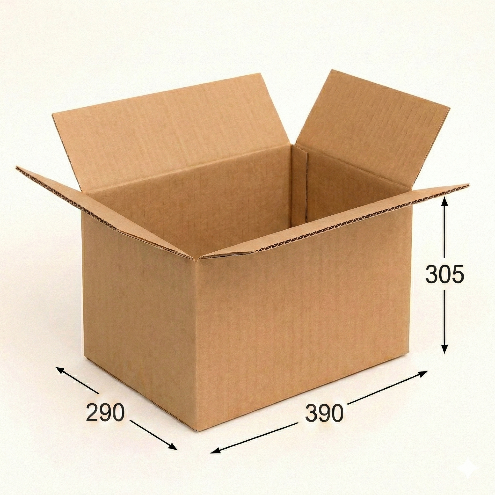 Ищете надежную упаковку, которая не подведет в пути и защитит ваши вещи? Наша четырехклапанная картонная коробка средних габаритов (390х290х305 мм, 39х29х30,5 см или 39 на 29 на 30,5) — это именно то, что вам нужно. Этот универсальный ящик из гофрокартона 390х290х305 станет отличным решением как для бытовых нужд, так и для бизнеса.